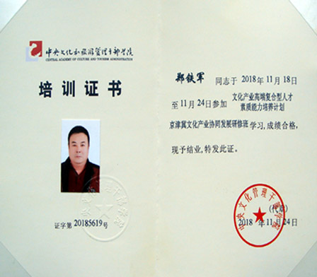 20181118日至24日,興隆縣鄭氏砂藝文化有限公司執行董事鄭鐵軍同志,受邀參加中央文化管理干部學院舉辦的“文化產業高端復合型人才素質能力培養計劃京津冀文化產業協同發展研修班”學習,于1124日圓滿結業。