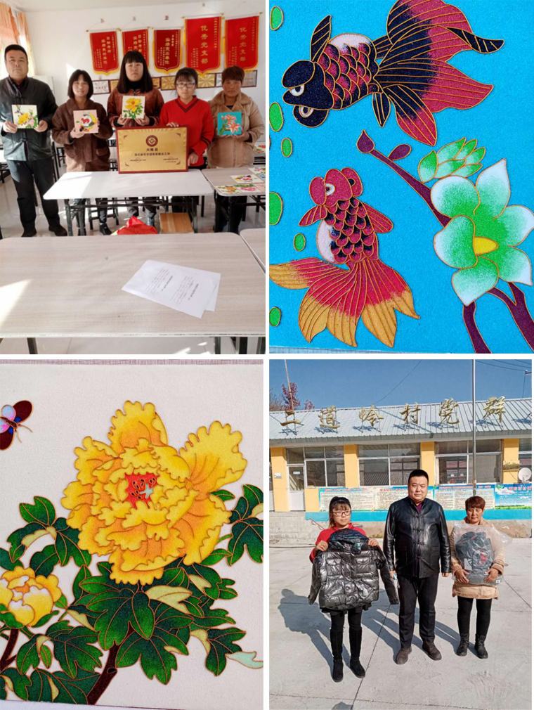 2020年11月6日。鄭氏砂藝文化有限公司由鄭鐵軍董事長帶隊,對蘑菇峪鎮扶貧就業工坊作品開展回收工作。這次回收的作品,不僅在工藝上美輪美奐,而且在勾絲和上砂技術上,有了顯著提升。通過學員刻苦鉆研,精心制作,該工坊由單一生肖大輪廓向花鳥蟲魚精巧細微作品的轉型。學員張秀榮、張玉紅等秋收、作畫兩不誤、兩促進,使得本次回收的作品質量達到預期效果。回收作品的同時還到蘑菇峪鎮二道嶺小學,親切看望了全村貧困小學生,為他們送去防寒服裝。這種嚴寒不忘貧困學子,匠心傳承大愛無疆的精神,令學生家長和廣大群眾肅然起敬。