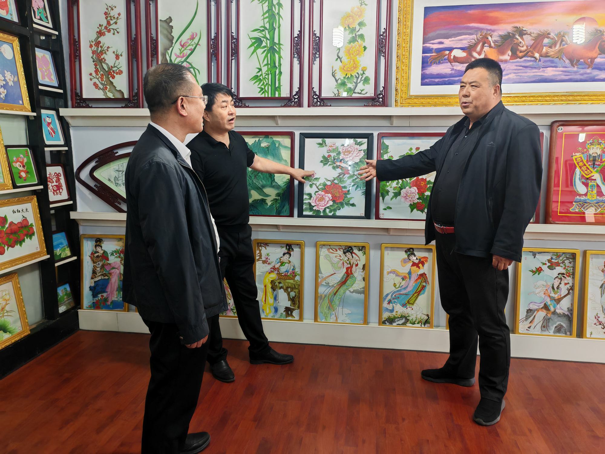 程志忠書記等一行在鄭氏砂藝董事長鄭鐵軍的陪同下,參觀了鄭氏砂藝非遺文化展館,了解了鄭氏砂藝非遺文化的傳承和發展。隨后,實地觀察了鄭氏砂藝(畫)的制作過程,并與砂藝技師們進行了交流,了解了砂畫制作原料和技藝手法。