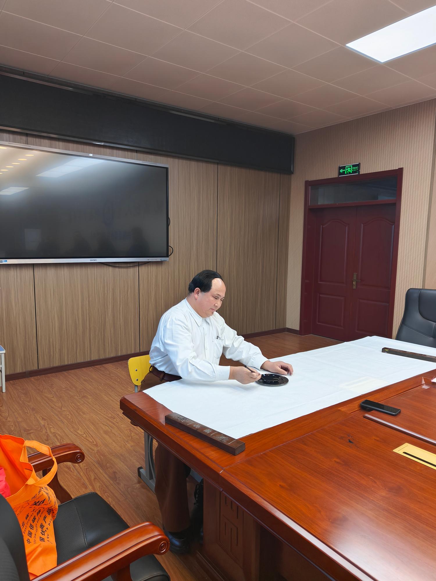 隨后,趙士奎老師移步至學(xué)校書法室,應(yīng)校領(lǐng)導(dǎo)的誠摯邀請,現(xiàn)場揮毫,為興隆縣職業(yè)教育中心題寫了校訓(xùn),即《厚德、精技、強身》。并書寫了詩詞《長征》,此作品不僅向偉人致敬,更激勵著廣大師生傳承和發(fā)揚長征精神,為實現(xiàn)中華民族偉大復(fù)興的中國夢不懈奮斗。