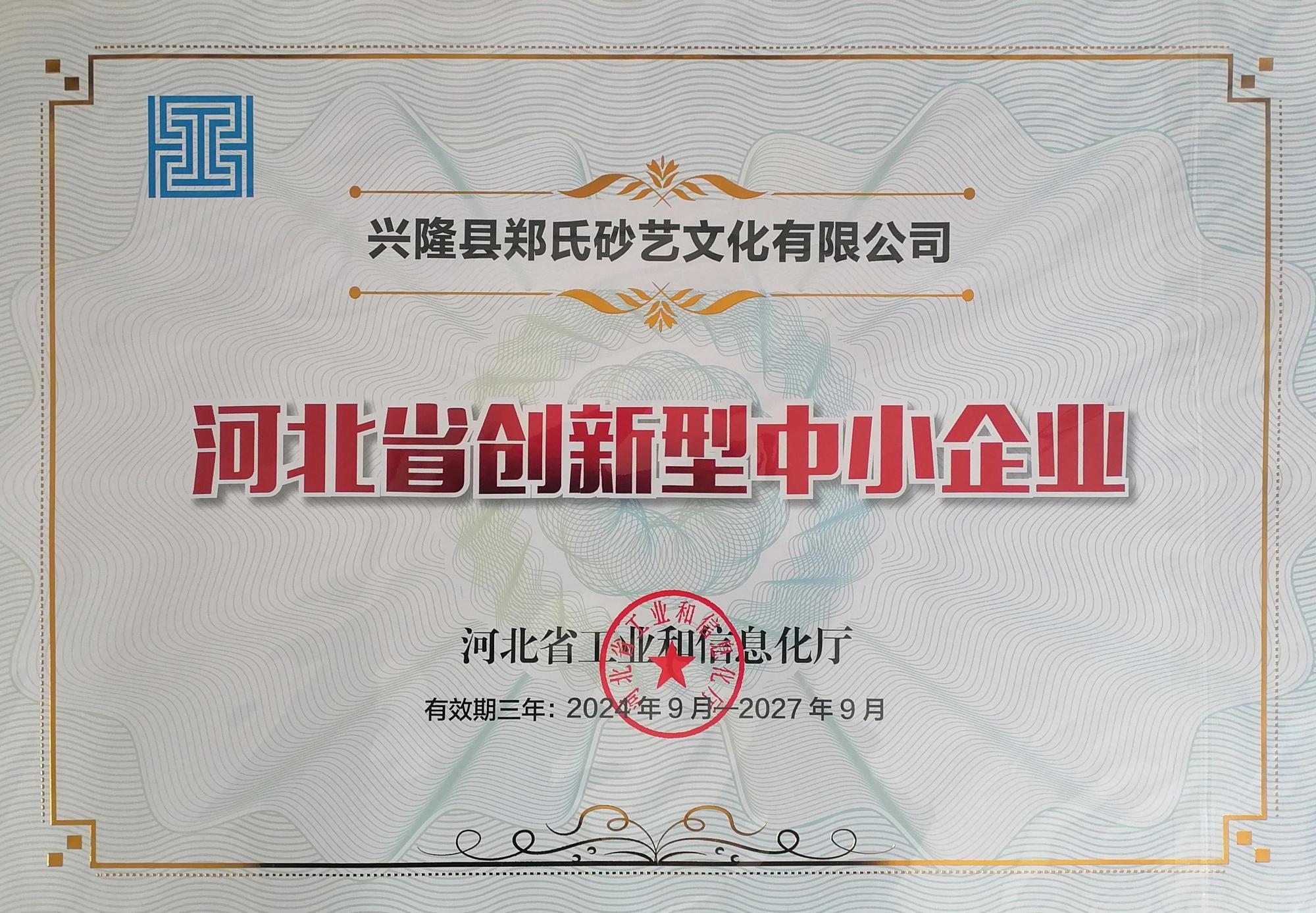 鄭氏砂藝獲評《河北省創新型中小企業》