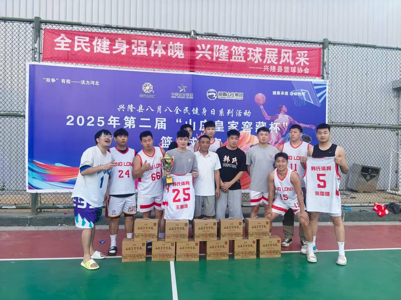 2025年8月31日晚,興隆縣后苗圃人民體育公園內(nèi),由興隆縣教育和體育局、興隆縣籃球協(xié)會(huì)聯(lián)合主辦的興隆縣全民健身日第二屆“山莊皇家窖藏杯”籃球挑戰(zhàn)賽圓滿落幕。歷經(jīng)8月30日至31日兩天的激烈角逐,來(lái)自全縣各鄉(xiāng)鎮(zhèn)、縣直單位、企業(yè)、學(xué)校及民間籃球愛(ài)好者組成的12支代表隊(duì)奮力拼搏,最終韓氏體育代表隊(duì)勇奪冠軍,凱興化工代表隊(duì)獲得亞軍,梳理普拉提代表隊(duì)摘得季軍。